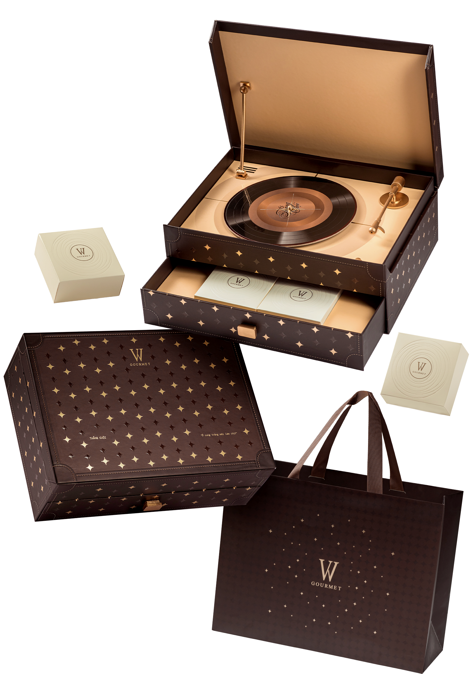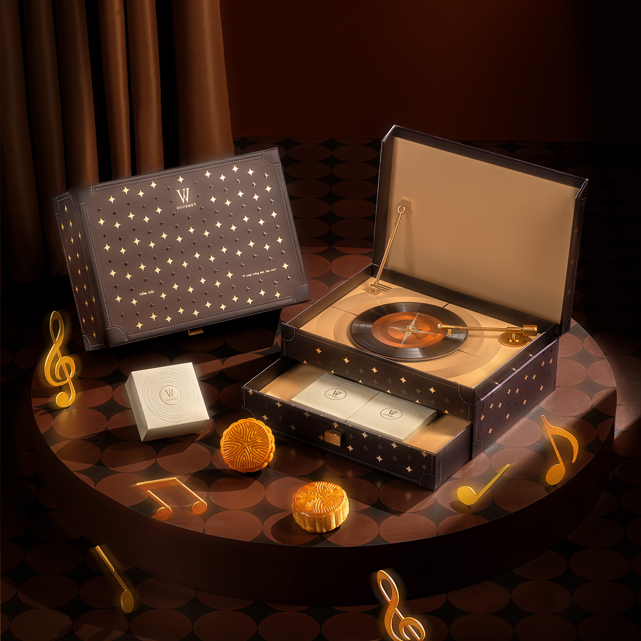 Tựa như bản giao hưởng của hoài niệm và tinh tế, Soulful Gift Set là sự cộng hưởng giữa nghệ thuật thiết kế và cảm xúc trao tặng. Từ gam màu sang trọng, chất liệu chọn lọc đến cấu trúc mô phỏng hộp nhạc đĩa than cổ điển với nút phát nhạc, từng chi tiết đều được chăm chút kỹ lưỡng. Bên trong là những chiếc bánh trung thu thượng hạng – nơi nghệ thuật thủ công hòa quyện cùng cảm hứng hiện đại, tạo nên món quà chứa đựng chiều sâu và sự kết nối. Không chỉ là quà tặng, đây là lời tri ân trân trọng gửi đến những mối quan hệ xứng đáng được nâng niu.